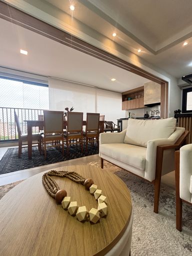 Sala para três ambientes, integrando conforto e funcionalidade.