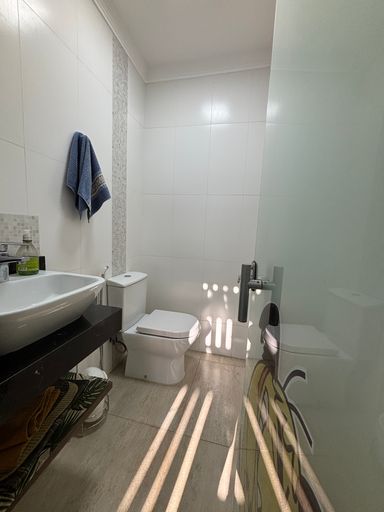 A cozinha open space, com seus armários planejados, não é só um espaço para cozinhar – é o coração da casa, onde os cheiros se misturam às risadas. E logo ao lado, a lavanderia, tão bem iluminada que até lavar roupa vira um momento de paz. Temos também um lavabo social, elegante, para quem chega de visita.